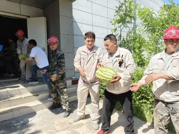 活動期間,固原基地工會深入現(xiàn)場,將防暑西瓜分發(fā)到職工手中,為身處高溫工作環(huán)境的職工送去陣陣清涼。同時對奮戰(zhàn)在一線的職工致以親切問候,并囑咐大家做好高溫防護,鼓勵大家在繁忙的工作中積極發(fā)揮勞模精神、工匠精神,為高溫季節(jié)安全生產保駕護航。