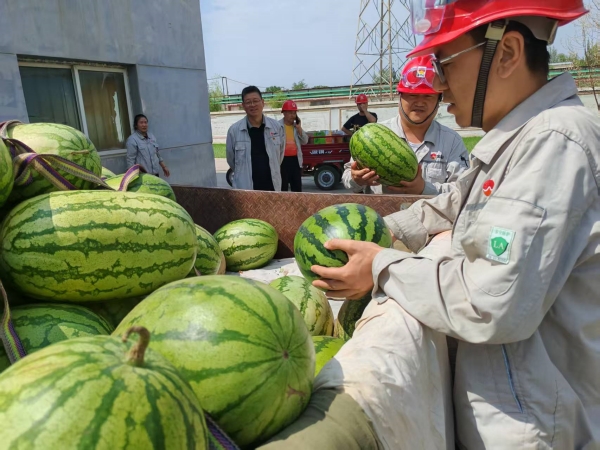 高溫猛如虎,關愛深似海。公司領導把西瓜和飲料等慰問品送到員工手中,將濃濃關愛送到員工心中。公司領導對員工們致以親切的問候,對他們在酷熱的夏天堅守崗位、默默奉獻致以崇高的敬意。員工們對領導的慰問如飲甘泉,信心倍增。
